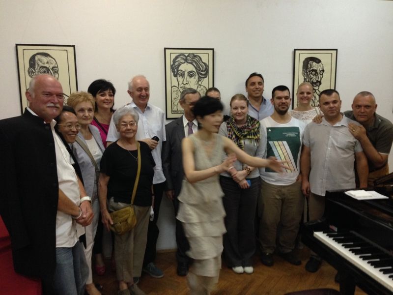 ヴィンコヴチでの今年のコンサート後の写真です。なぜか私だけ、まるで変な踊りを披露しているみたいですが、いただいた白いバラのブーケに手を伸ばしているところです