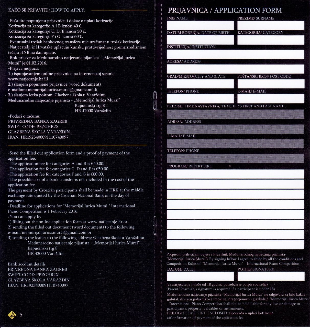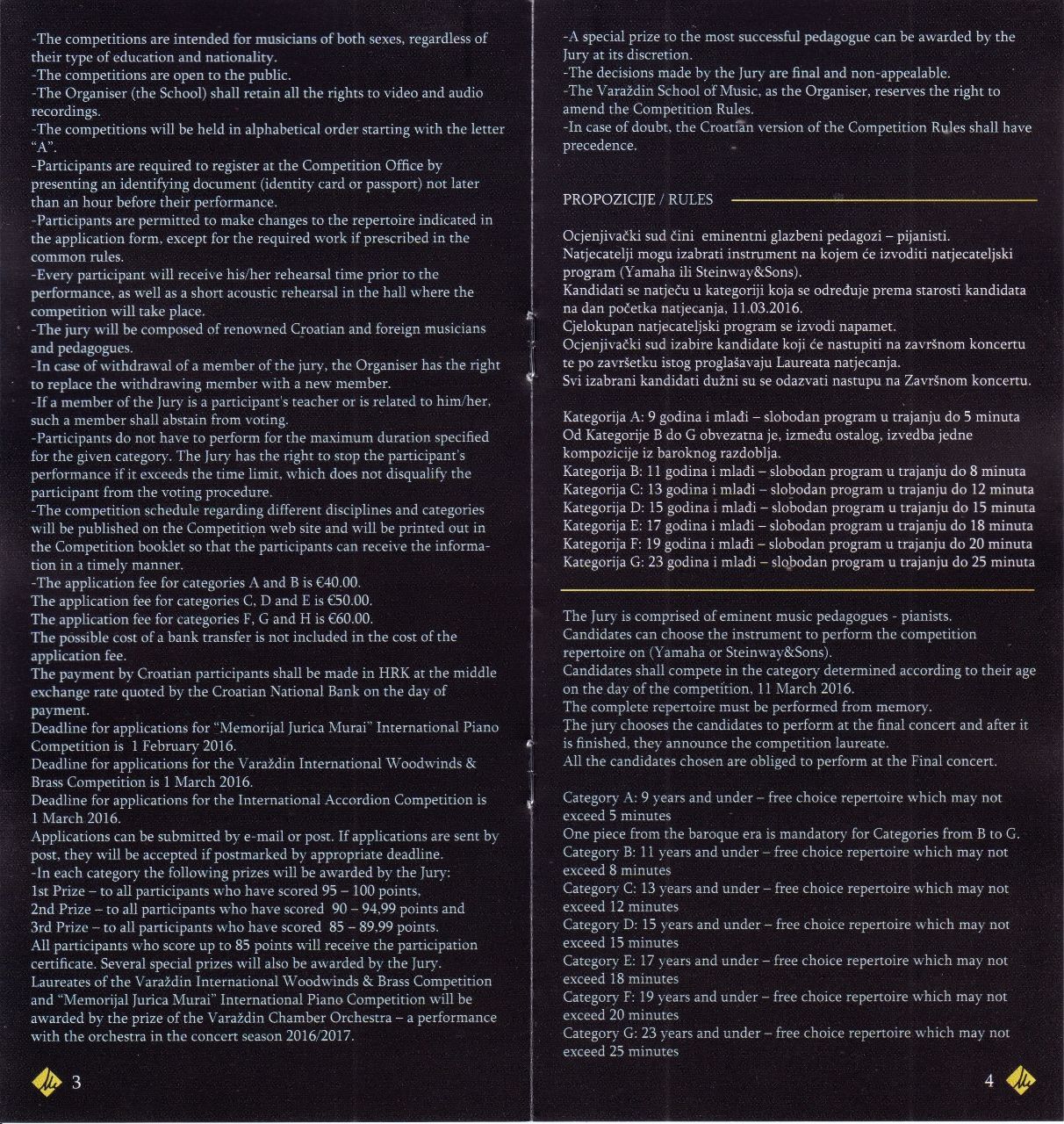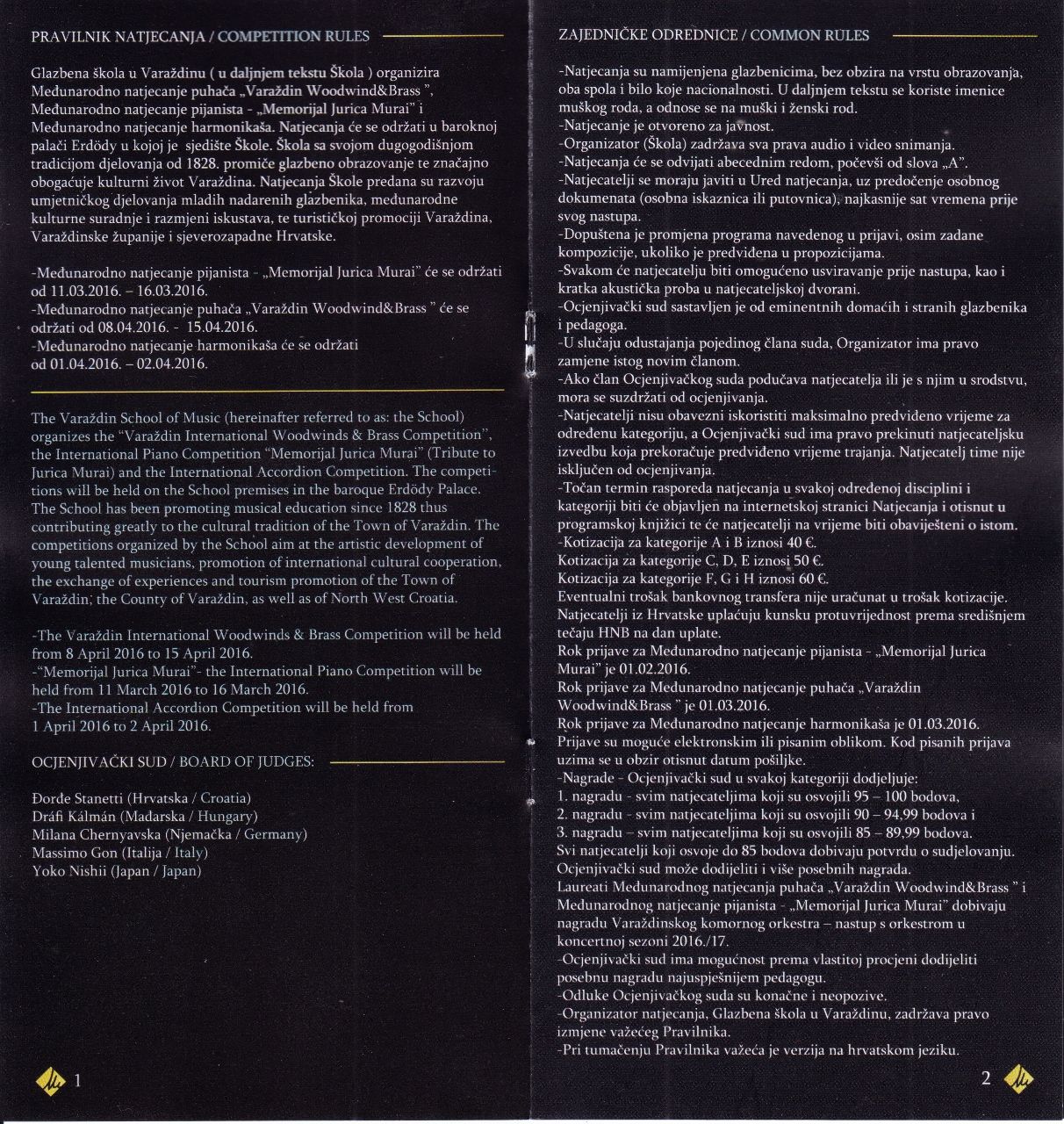 2016年3月11〜16日クロアチアの美しいバロックの町ヴァラジュディンにて、第2回Jurica Murai記念国際ピアノコンクールが開催されます。入賞者には、ヴァラジュディン室内管弦楽団との共演の機会が与えられるそうです。